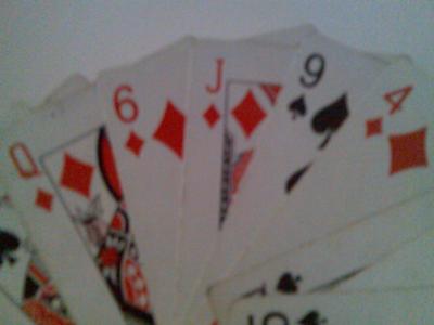Before you start get all the 6's and 9's from the deck and place the 9's on top and the 6's at the bottom. Deal the deck out into four piles as though you were dealing out a hand in cards, but make sure that the bottom and top cards stay the same don't get them mixed up!